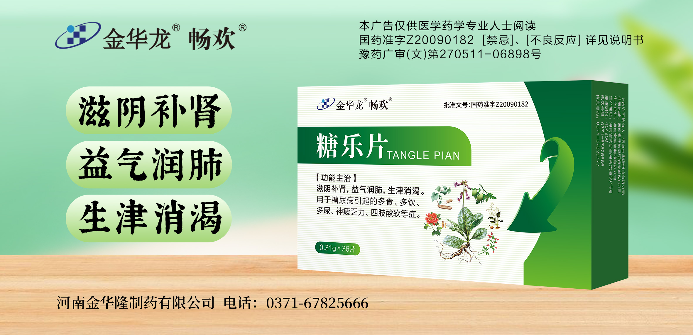 【功能主治】滋阴补肾,益气润肺,生津消渴。用于糖尿病引起的多食、多饮、多尿、神疲乏力、四肢酸软等症。